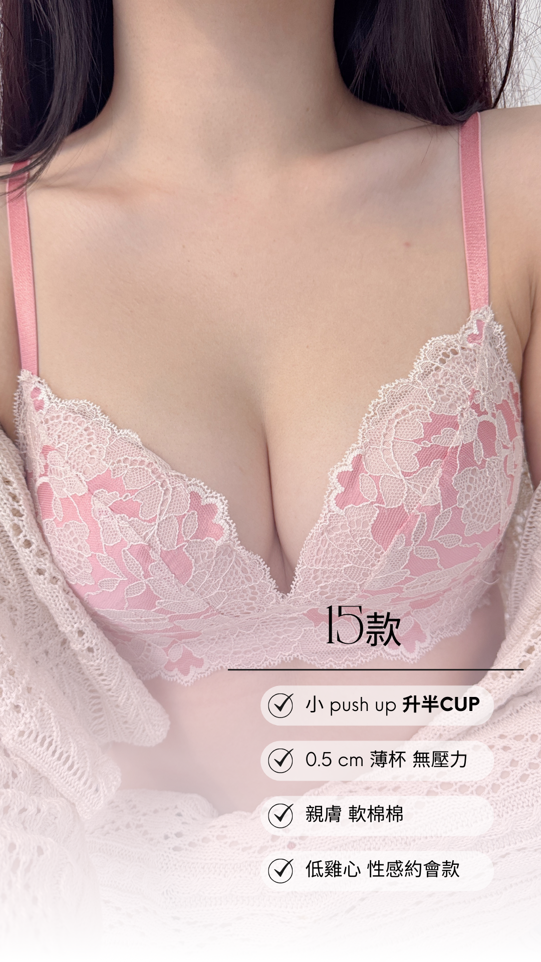 ✔ 5 cm 以上胸圍差必入,A級不空杯 + 視覺升半cup!