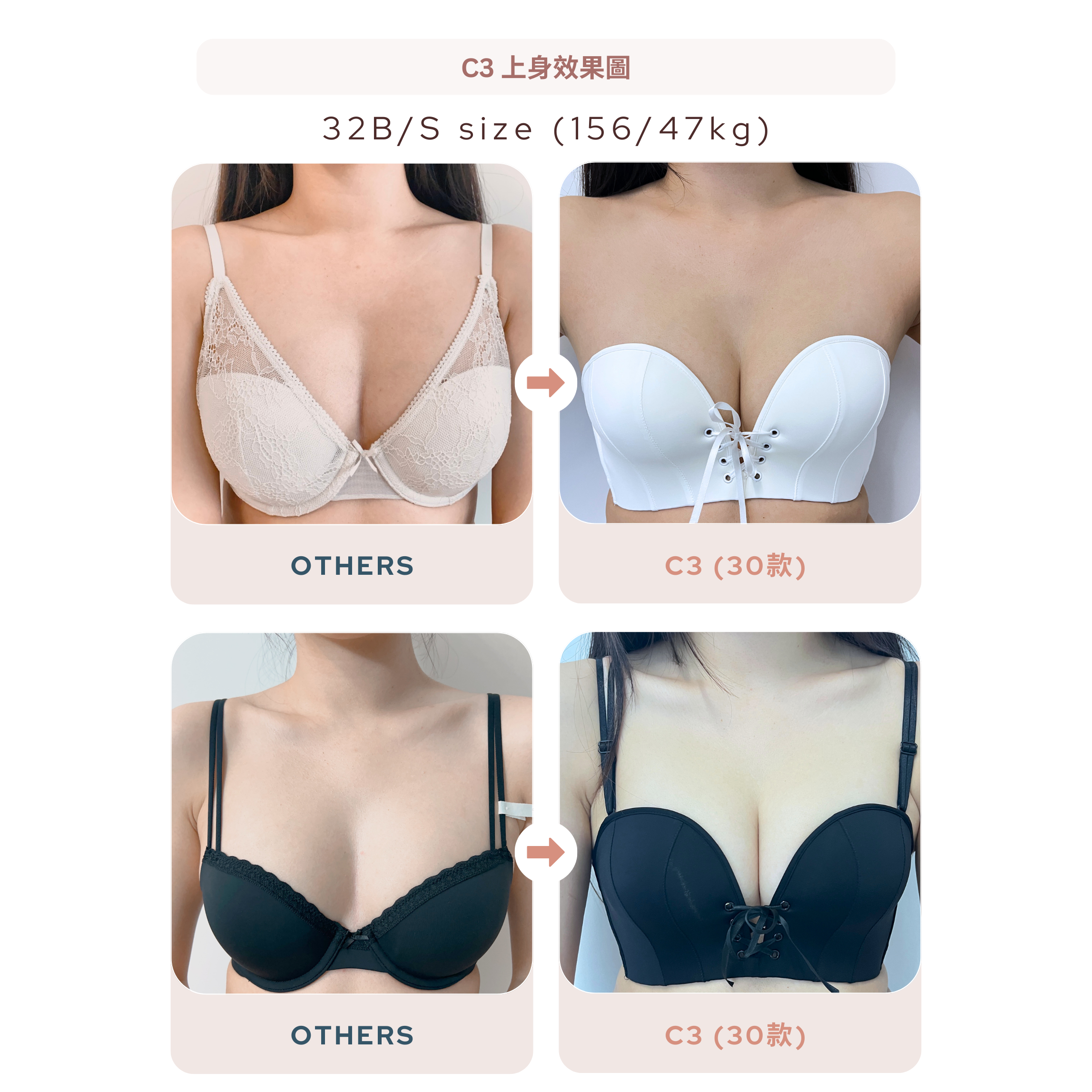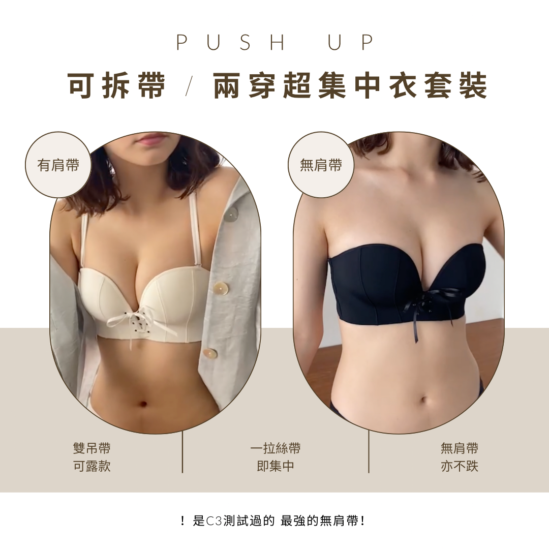 ✔ 零肩帶也狂推!平胸女仔都能擠出自然深溝,視覺升1.5 cup!💃