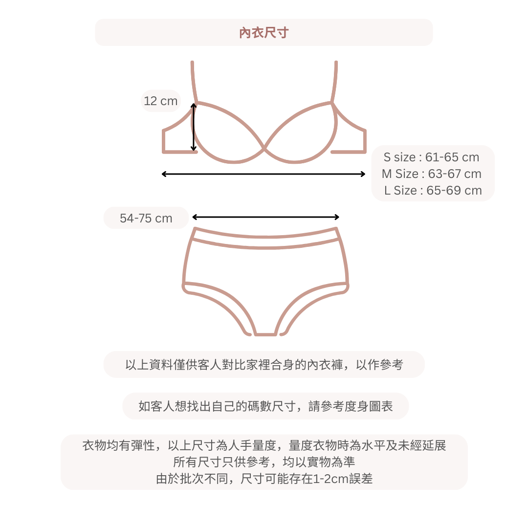 💝 價錢已包含 Free Size 內褲,可拆肩帶 2 條、橫安全帶及前絲帶 (需自行綁上)