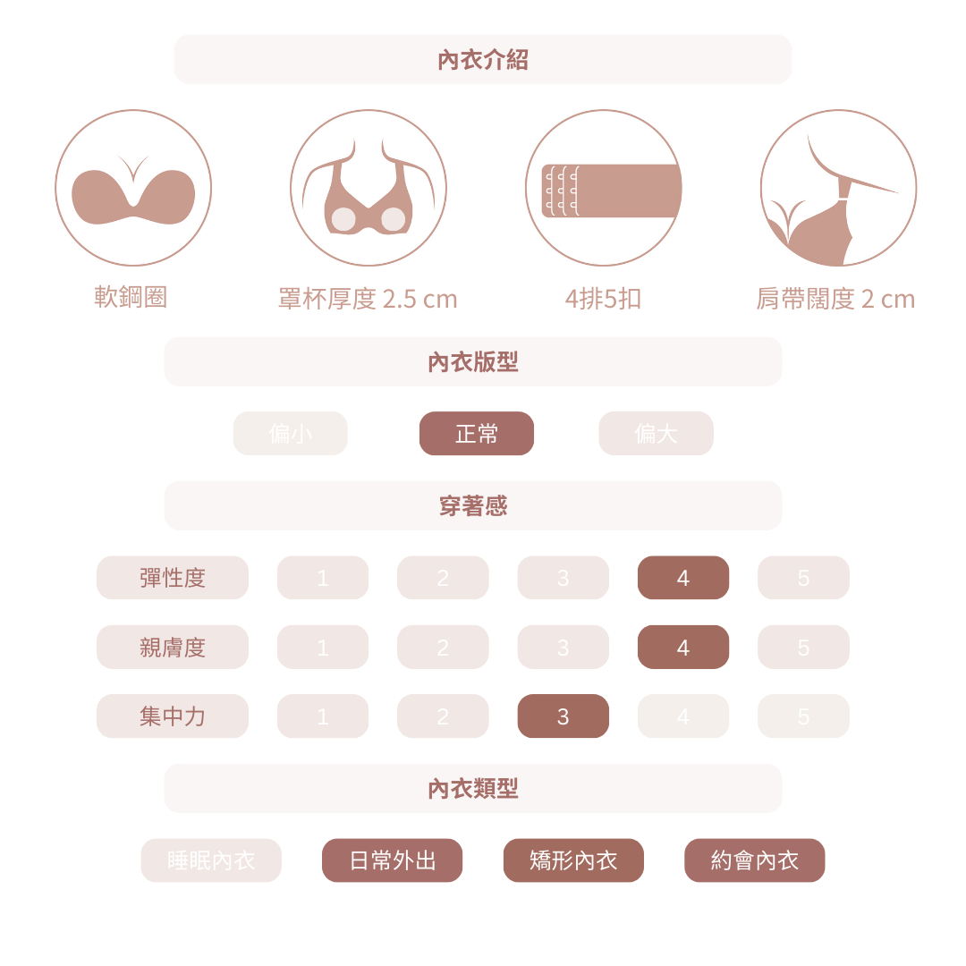 ✔ 2.5cm智能記憶棉,A杯秒變自然C弧