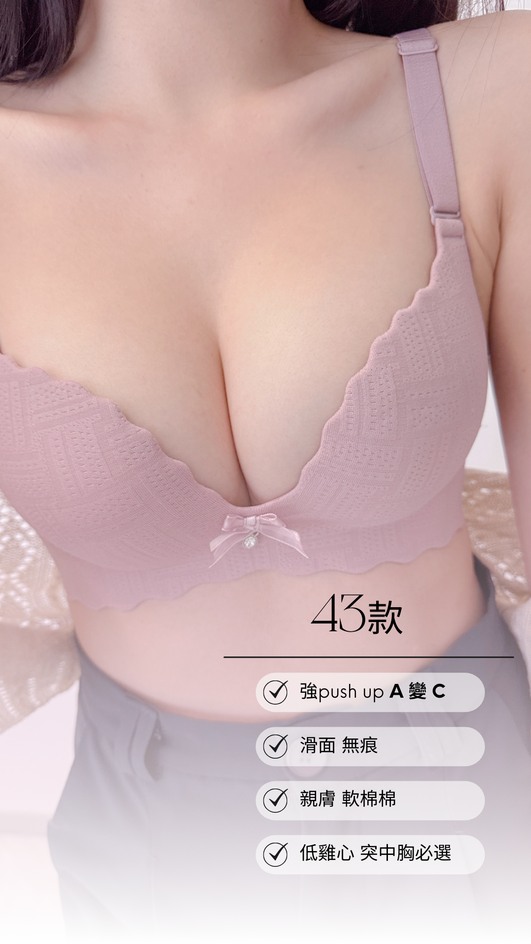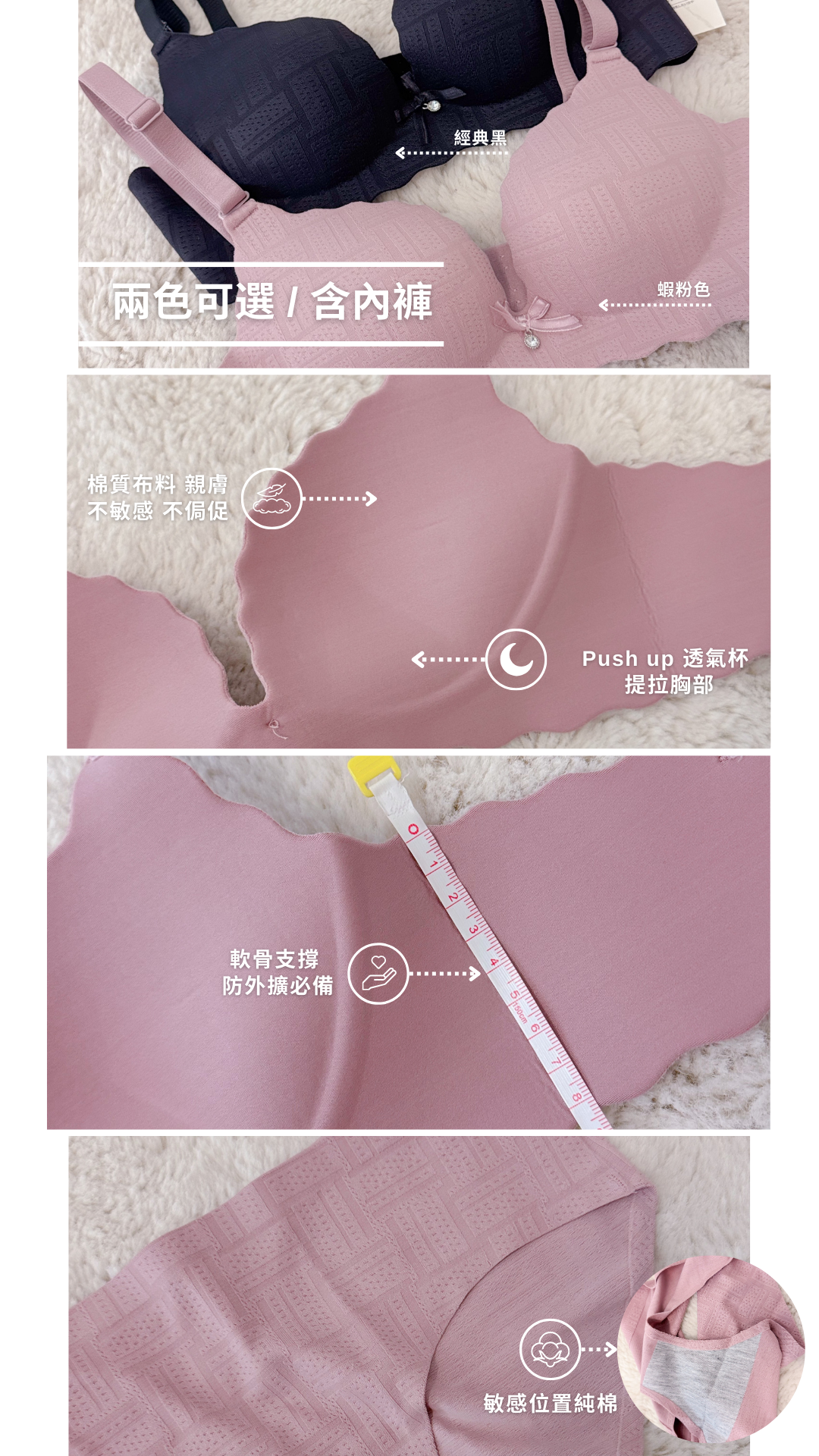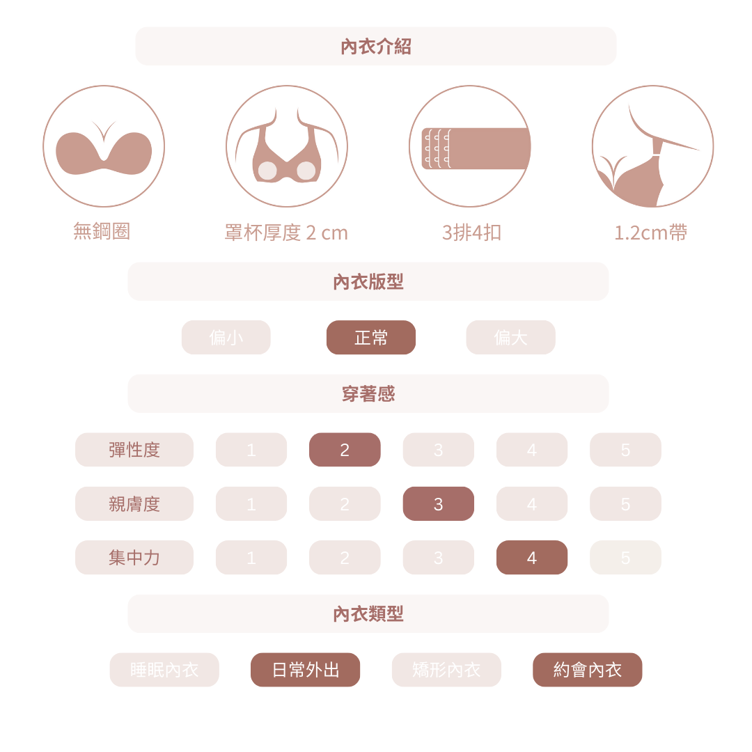 ✨主打功能:push up 提拉胸線 / 滑面無痕