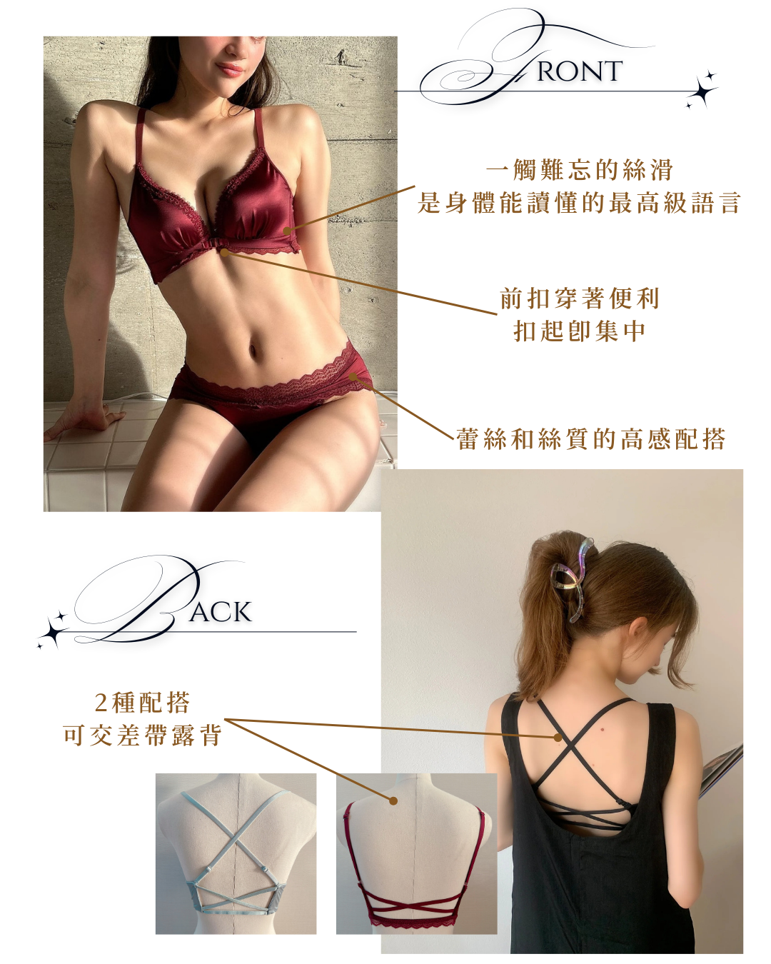 ✨主打功能:push up 提拉胸線 / 胭脂色 珠光銀色 絲絨氣質up!up!