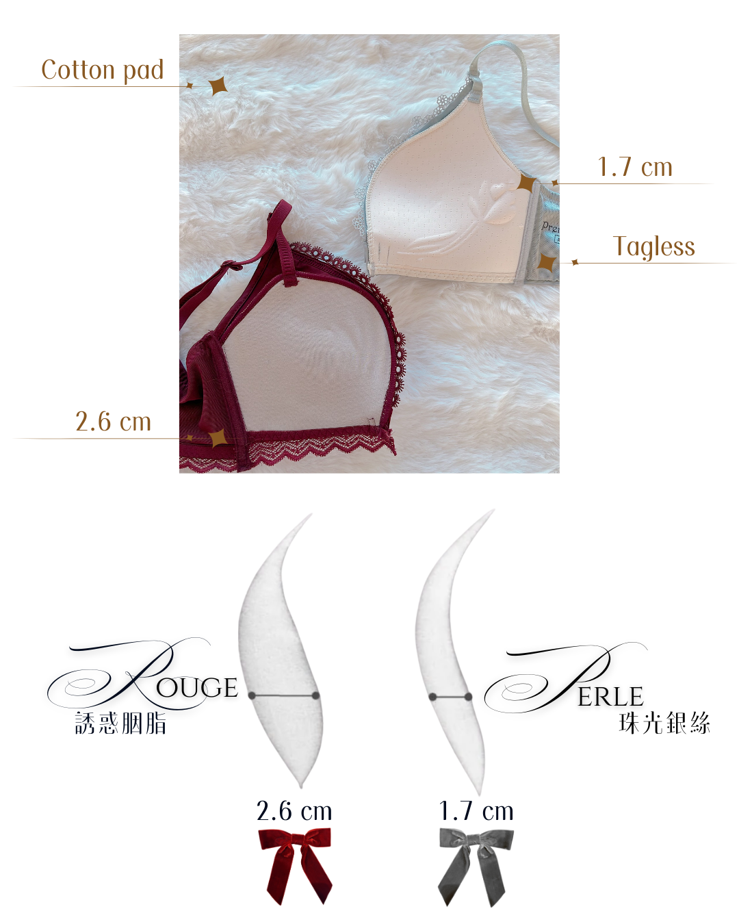 - 4 cm 胸圍差可入珠光銀色,杯薄較薄又集中版型!